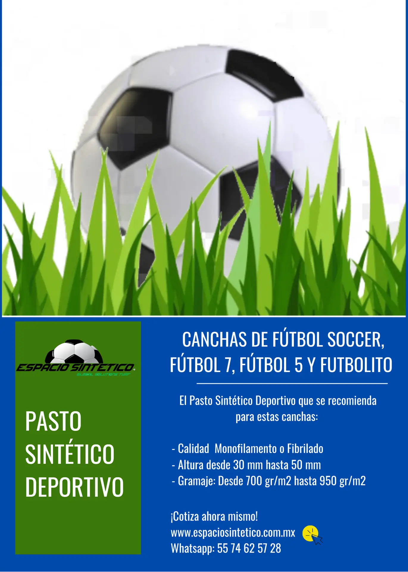 PASTO SINTÉTICO PARA FÚTBOL SOCCER, FÚTBOL 7, FÚTBOL RÁPIDO Y FÚTBOL 5.